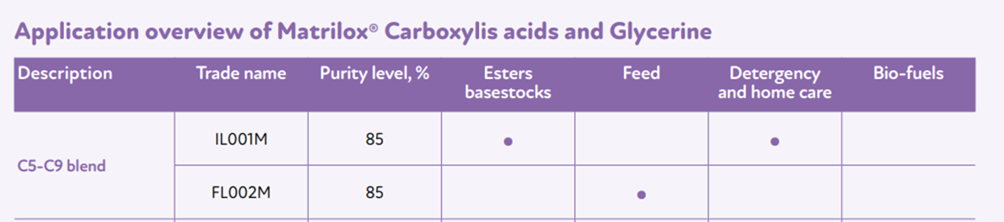 Two product grades are available for different applications: FL002M, certified GMP+ and intended for feed use, and IL001M, intended for industrial applications.