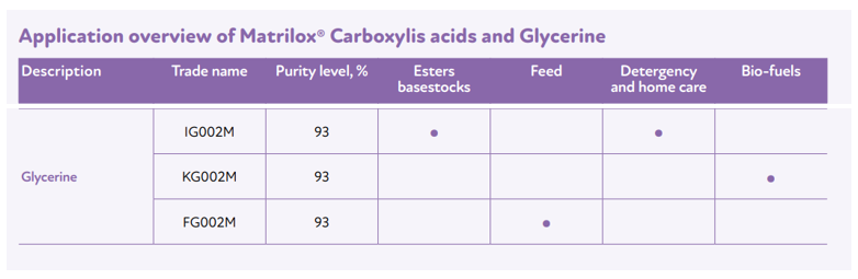 Matrilox® glycerin is a viscous liquid derived entirely from vegetable sources, with a high level of purity (>93%).Beyond its use as an emollient, humectant, and smoothing agentin cosmetic formulations, glycerin is widely applied in the pharmaceutical sector, in the production of antifreeze liquids, and as a raw material for ester synthesis. It is also approved under Reg. (EU) 68/2013 as a raw material for animal feed.